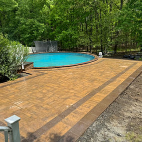 This custom project brings together natural warmth and upscale design through a beautifully curved pool framed in earth-toned pavers. A newly installed elevated deck provides a comfortable seating area above the waterline, while a spillover waterfall adds a soothing visual and acoustic element that ties the entire space together.