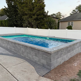 Elevated Rectangle Pool with Grey Retaining Wall and RGB LED Lighting in Clark, NJ