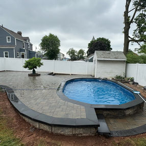 Octagonal Semi Inground Pool with Curved Paver Terrace